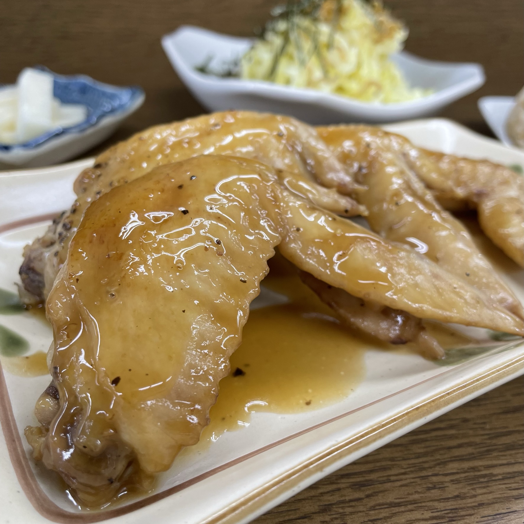 フライパンに油を引いて、中火で加熱し、手羽先を皮目から焼き色がつくまで焼きます。